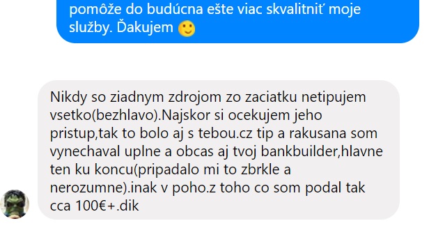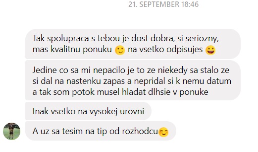 Veľmi mi záleží na tom, aby boli členovia vždy spokojní a tak sa vždy pýtam na ich názory a žiadam si referencie, aby som vedel, čo na svojej práci zmeniť. Niektoré referencie, ktoré som obdržal od svojich členov vám pridávam aj sem na stránku. Z dôvodu zachovania anonymity nebudem písať celé mená, ale všetko ide o referencie od mojich reálnych členov.